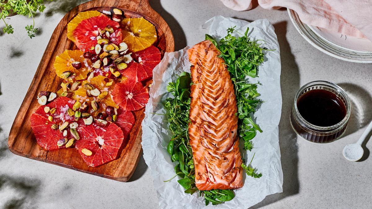 Frisk og fargerik sitrussalat møter saftig, grillet laks i denne sommerlige retten fra kokk Simen Vatne. Med nøtter, honning og en syrlig dressing får du en smakfull kombinasjon som passer perfekt til både hverdagsmiddag og gjester.