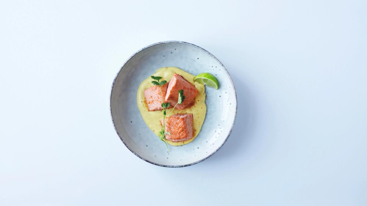 En rask og smakfull lakserett med kremet saus av crème fraîche, søt mangochutney og et hint av karri. Perfekt når du vil imponere med noe enkelt.