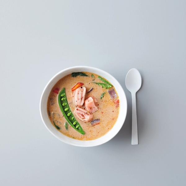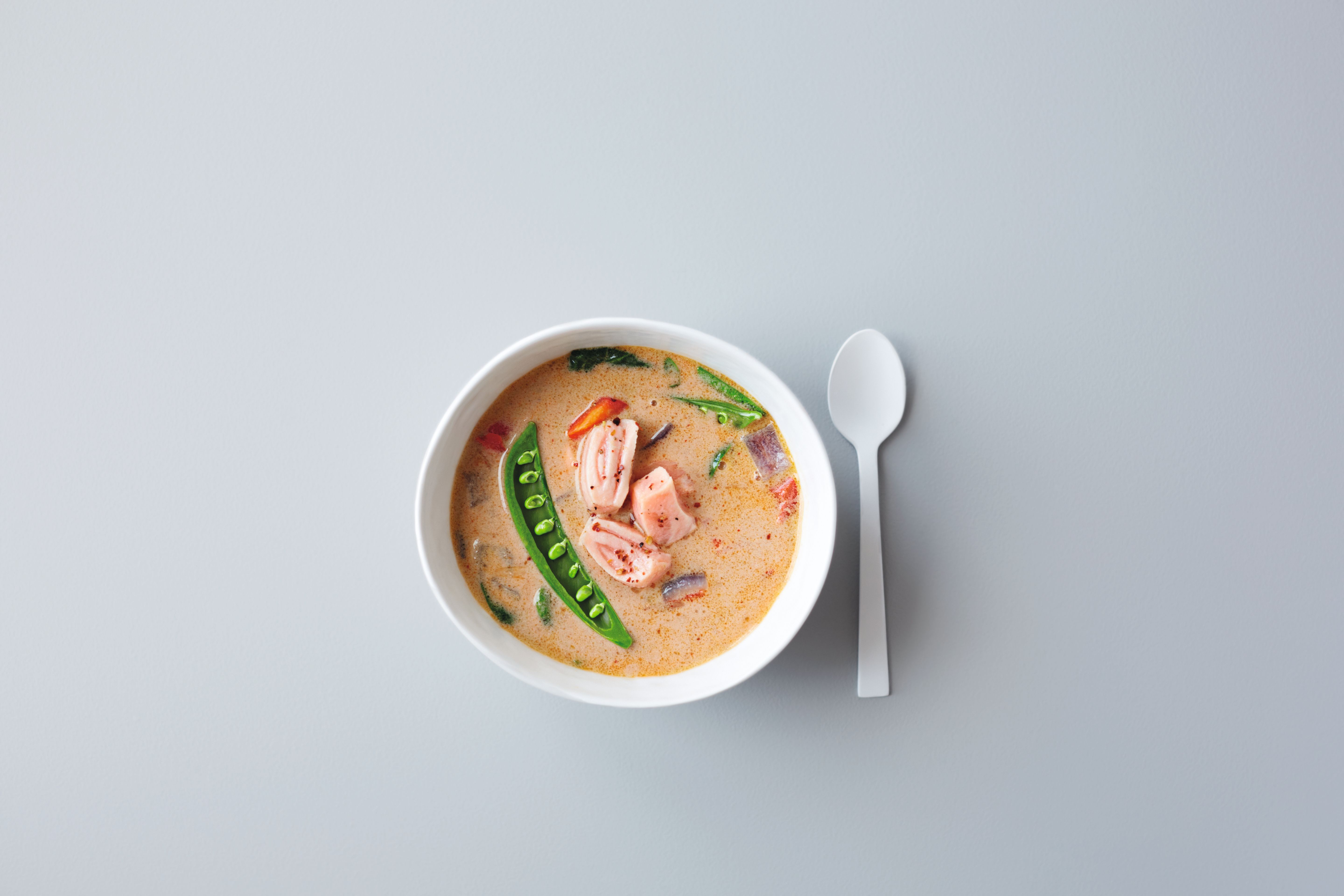 Curry-suppe med laks