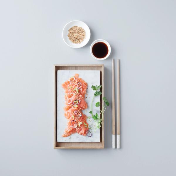 Laks med créme fraîche, sitrussaft og soyasaus